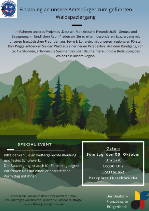 Um einen aktiven Austausch mit unseren Gästen anbieten zu können, waren alle Amtsbürger zum Waldspaziergang ganz herzlich eingeladen.